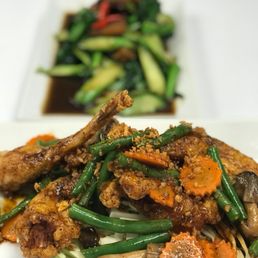 This is a smaller restaurant in the middle of a bunch of different businesses, but don't let the outside fool you! The interior is clean and basic, with some decorations over the bar and not a bunch of things to distract you. The servers were quick to offer menus and suggestions. Our waters never ran out and they did a great job of taking care of us. We tried the Thai dumplings and loved them! My wife may be addicted to the sauce that came with them. The stir fries veges and fried rice were delicious as well.